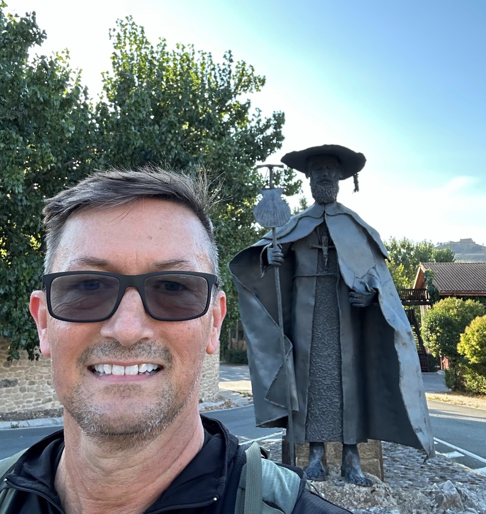 All these structures that are older than my country, made me start thinking about the peregrinos walking to Santiago. The first record, I learned today, was in the 1100s. As I passed the sunflower fields, grape vineyards, olive trees, it made me start wondering about what the early pilgrims ate on the way. Did farmers get angry when those walking helped themselves to a little sustenance? Other trees and plants like figs, apples and plums grow randomly. I also thought about seeing the road signs indicating distances and how 20 km in a car is not so far but as a walker, thats a long day! What’s more is thinking all the wonderful people I have met will walk to Santiago and then fly, train, or bus home while the early pilgrims turned around and walked back!