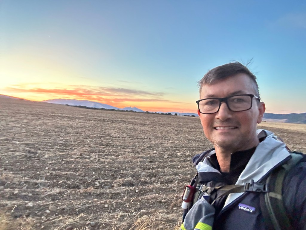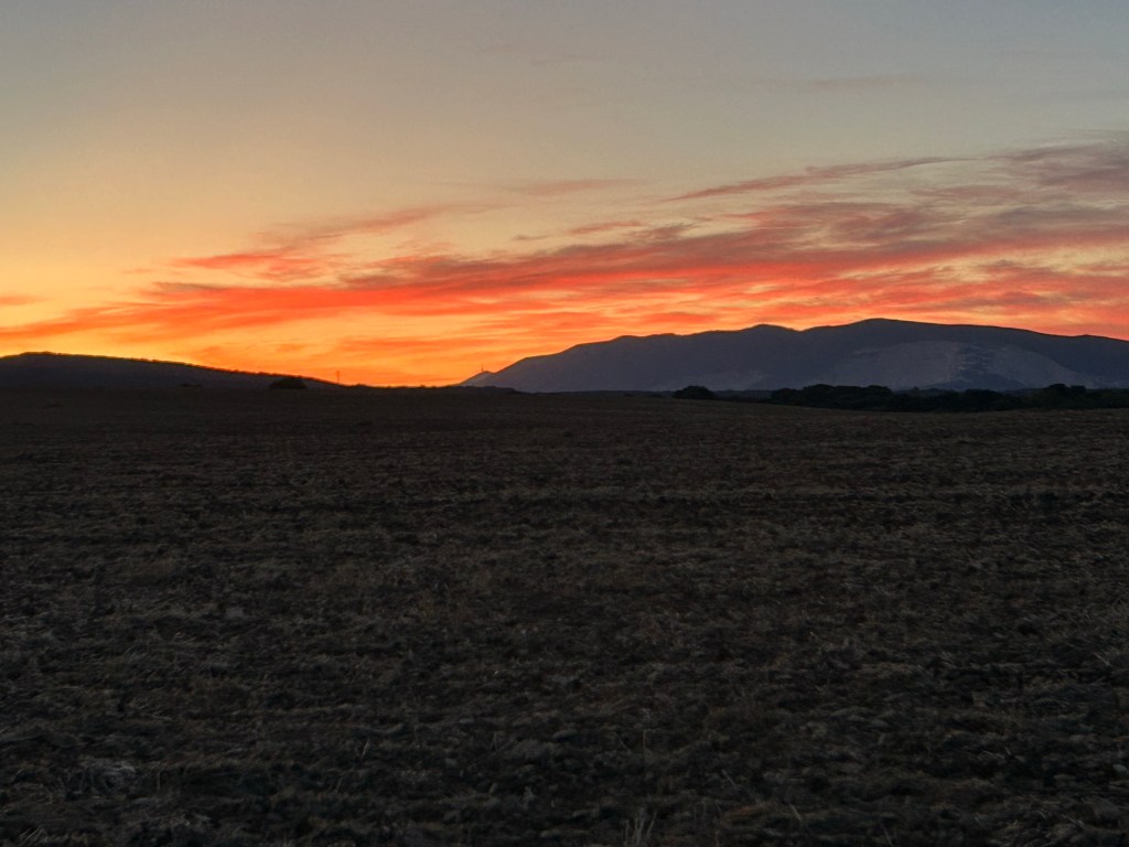 After another enjoyable dinner and a good night’s sleep, I was ready to get out there early today. headed out before dawn about 6:45. Treated to a gorgeous sunrise over the same mountains ridge that almost did me in yesterday!