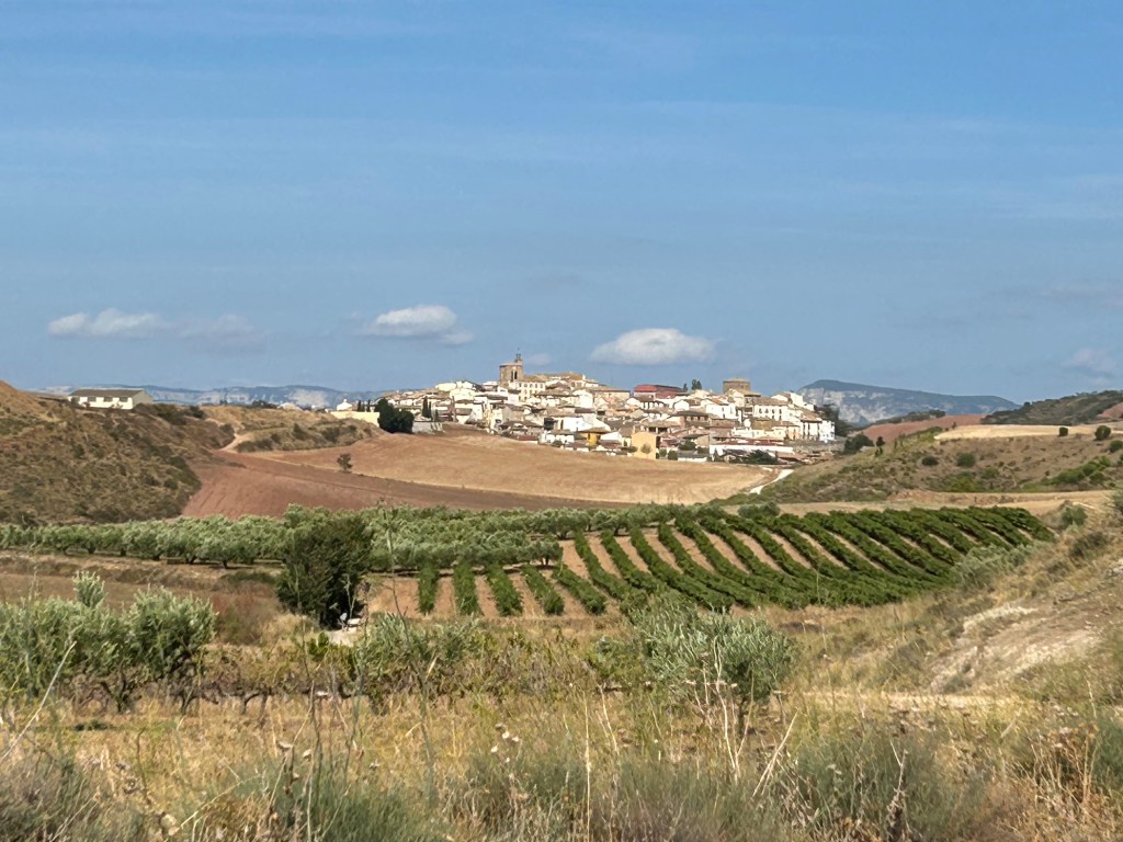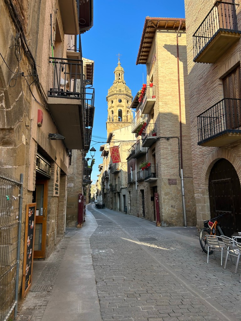 This is the latest I have been to bed in a week. Its about 10:30pm. I got to Estella today, exhausted. The sun and heat when carrying a 14 lb backpack is challenging. The feet hurt, the back and shoulders are crying, the face is trying not to cry and coaxing all the rest to just get to our sleep place! i treated myself to a private room and bath tonight. While nice and all, I missed the conversations and getting to know others tackling the same challenge I am and why! This Albergue didn’t do meals so I ventured out to grab something quick before the rain started. With the extra walk up the street and back, today was 53,941 steps, just over 22 miles! Night y’all!