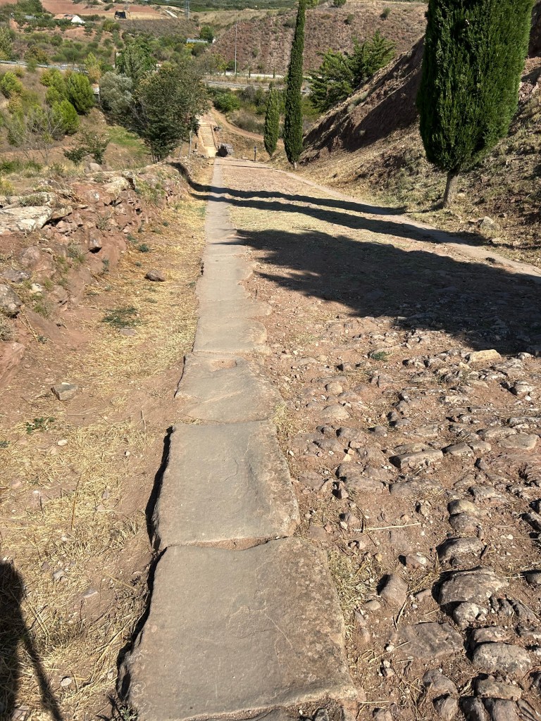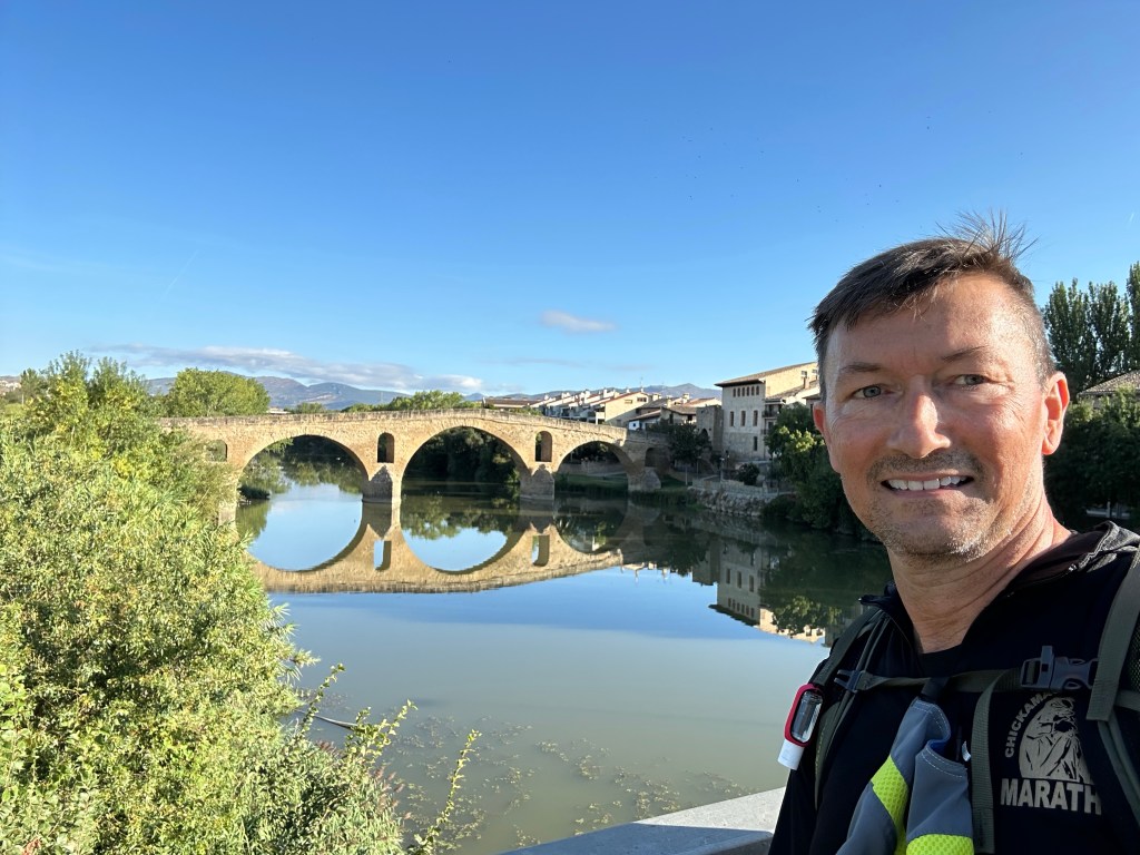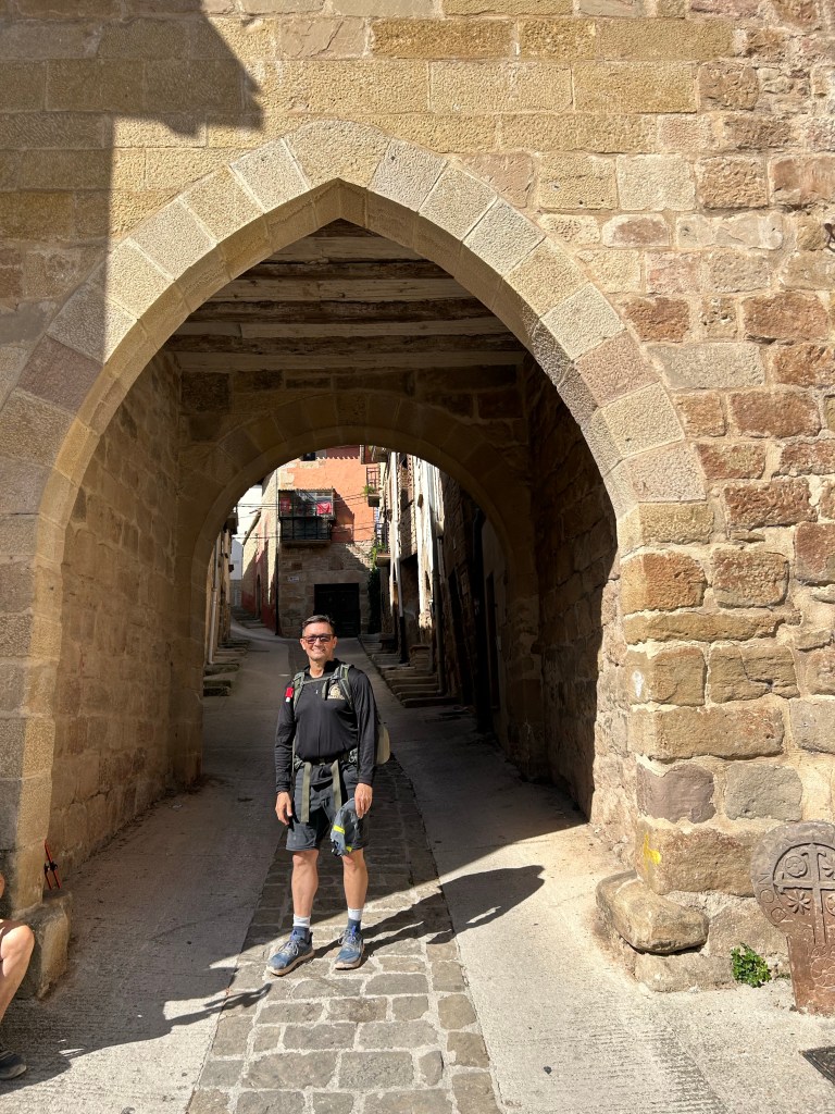 One of the villages was ls a hill village which was intriguing as one could see it from quite a distance. Cirqauqui was the first one of these. I had my first “non-selfie” taken at the gate to the city! What made me excited all morning though was the road and bridge leading out of Cirauqui was built by the Roman Legions when they occupied Spain. The road and bridge were old when all those churches were built!