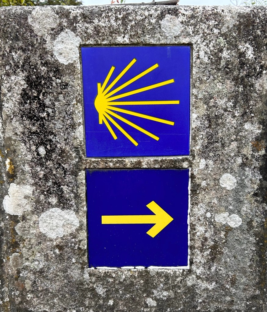 For many pilgrims the journey doesnt end in Santiago but in Finistere or Muxia, 90 miles west of Santiago on the coast of Galicia. For some, this is a separate Camino. Today, I made the journey by bus due to time and tired legs/feet! It was a very nice day, despite the rainy and at times blustery weather. Admittedly, I did feel a longing when seeing the familiar blue and yellow markers on walls, bridges and along roadsides. The 7 stops showed some more historical significance and explained the importance of Galicia, the crops and strategic position of the region. Many points we missed or wondered about while walking. For example, corn was ever present in the fields and being September, about ready to be harvested. Corn is not indigenous but was brought to Spain after the exploration of the “New World” in the 15th century. However, as the soil is very acidic, after harvest time, truck loads of mussel and clam shells are brought from the abundant waters off the coast to add calcium and nutrients to the soil. Who knew?!