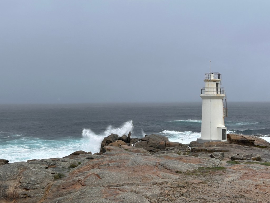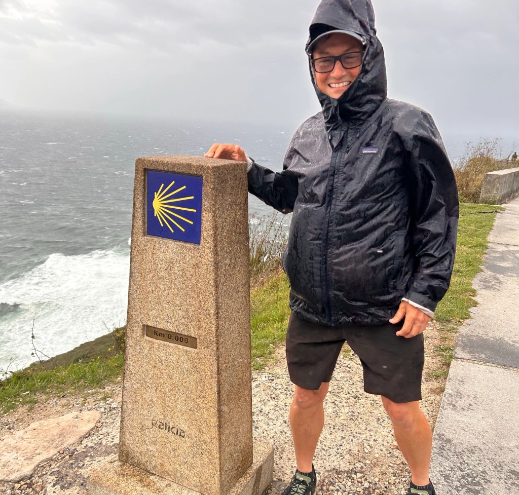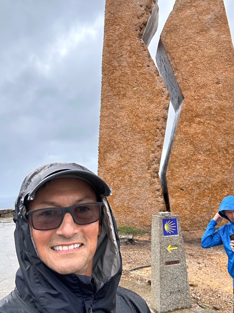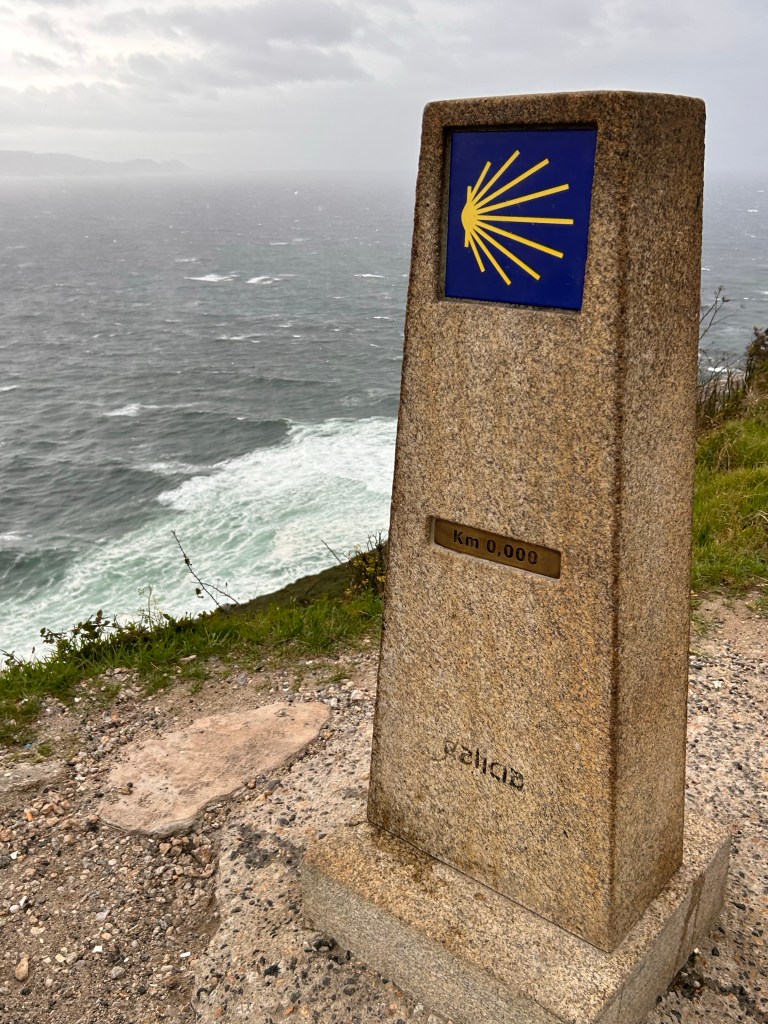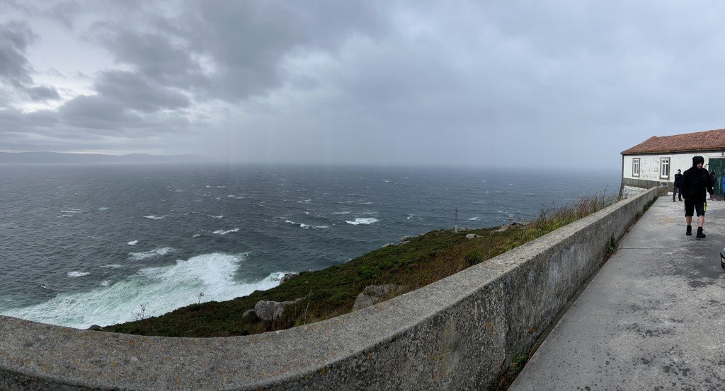 As we drove further along the “Coast of Death“, we approached Finisterre. The coast was given the nickname “of death” by the British due to the number of shipwrecks in the 200 km stretch of Galician coast. For the Romans and early pilgrims, Finistere, where the land meets the ocean, represented the end of the known world. I could easily understand this belief today and what they might have believed lied beyond in our conditions today. A powerful wind came in as we approached and standing on the point of the western most lighthouse of continental Europe, the front made a defined “wall” offshore and nothing could be seen beyond. The wind was so fierce, I honestly worried about standing still while getting a picture with the Camino KM marker “0”!