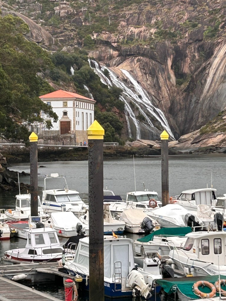 Muxia also has a sanctuary to “the Virgin of Barca”. With the weather depression that encased us, the waves crashing at the lighthouse here and around rhe cape were amazing. The wind however, encouraged is all to take pictures and hump back in to the warm coach! I am sure it sunny weather, the view is breathtaking!