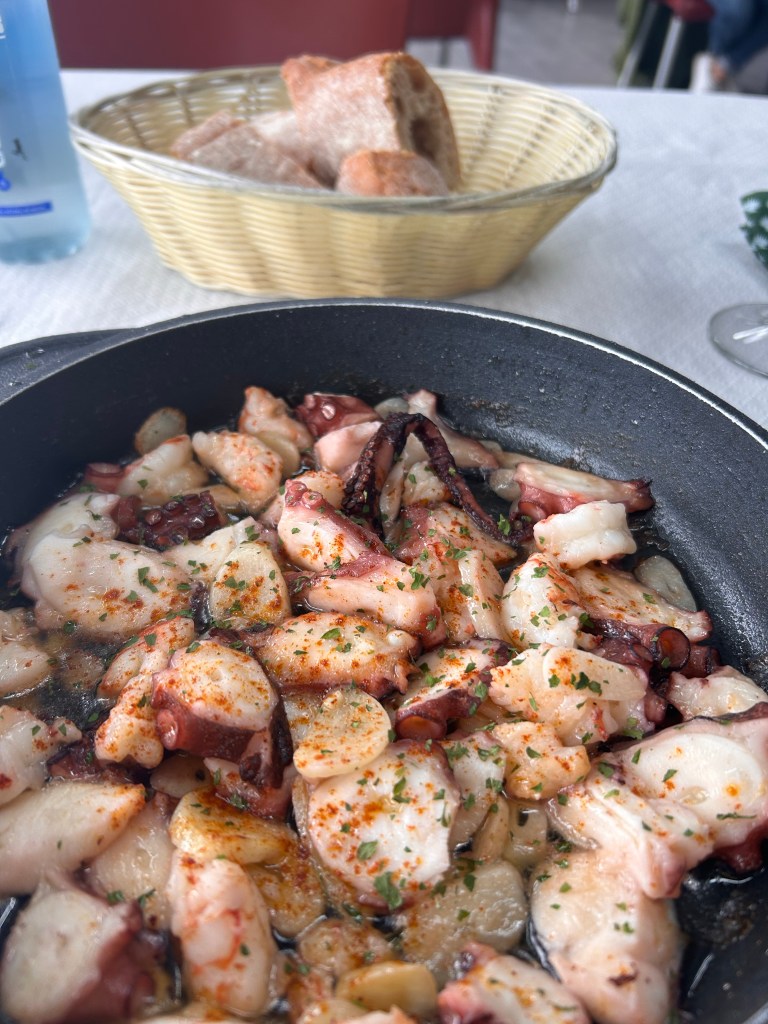 After an amazing lunch in the town of Fisterre if Galician Pulpo and Shrimps, we were off to our final stop of Muxia. Muxia can also claim being the furthest western point but doesnt have the name. What it does have is the claim to fame of being the “end of the world” in the movie “The Way” about the Camino starting Martin Sheen. There is also the “0” km marker here and the sculpture behind it.